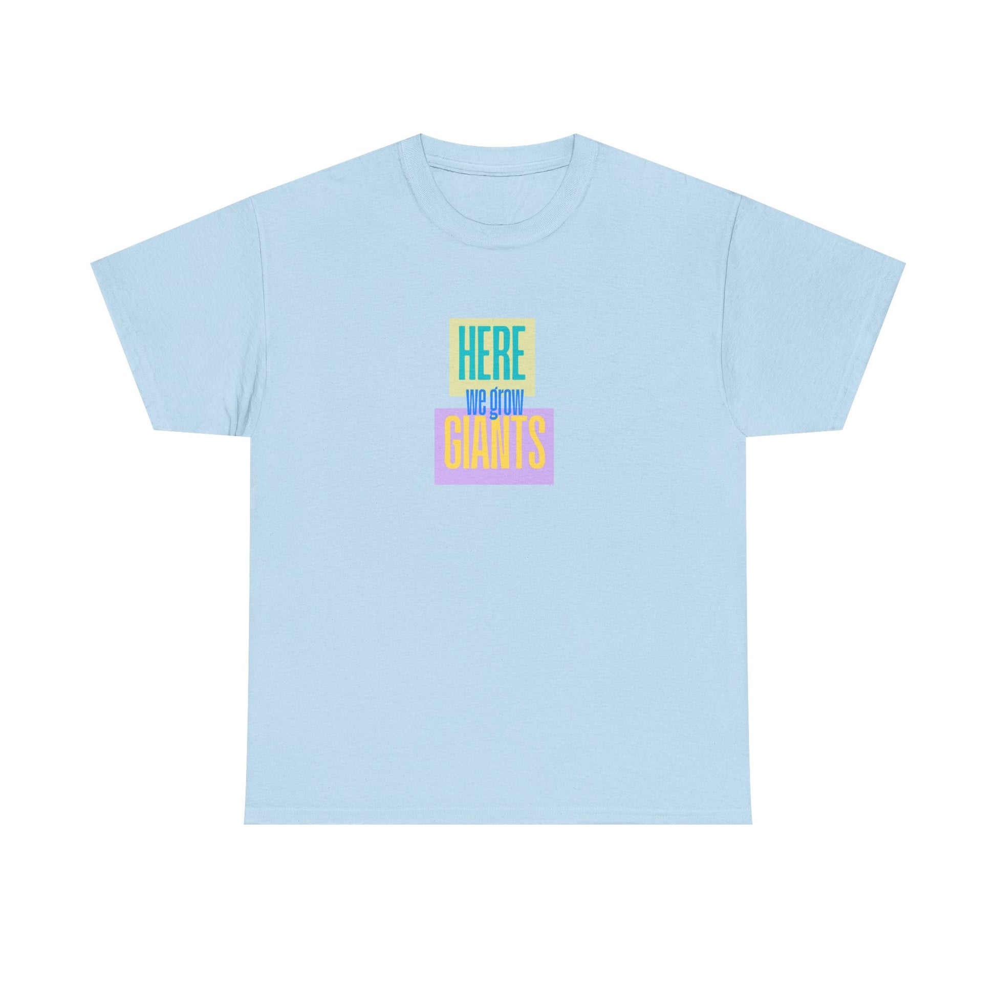 Soft, breathable, and intentionally casual — this classic tee carries a quiet, optimistic vibe. A compact, pastel block-design sits at chest level, announcing a short, upbeat message in mint, lemon and blush tones. Wear it on slow weekend mornings, during coffee-shop sketch sessions, or layered under an open shirt for a subtle pop of color. The relaxed cut and crew neckline let the shirt move with you, while the smooth, sturdy cotton keeps the print crisp and the silhouette clean. It feels like a gentle nudge to be kind to yourself — lighthearted and wearable every day.