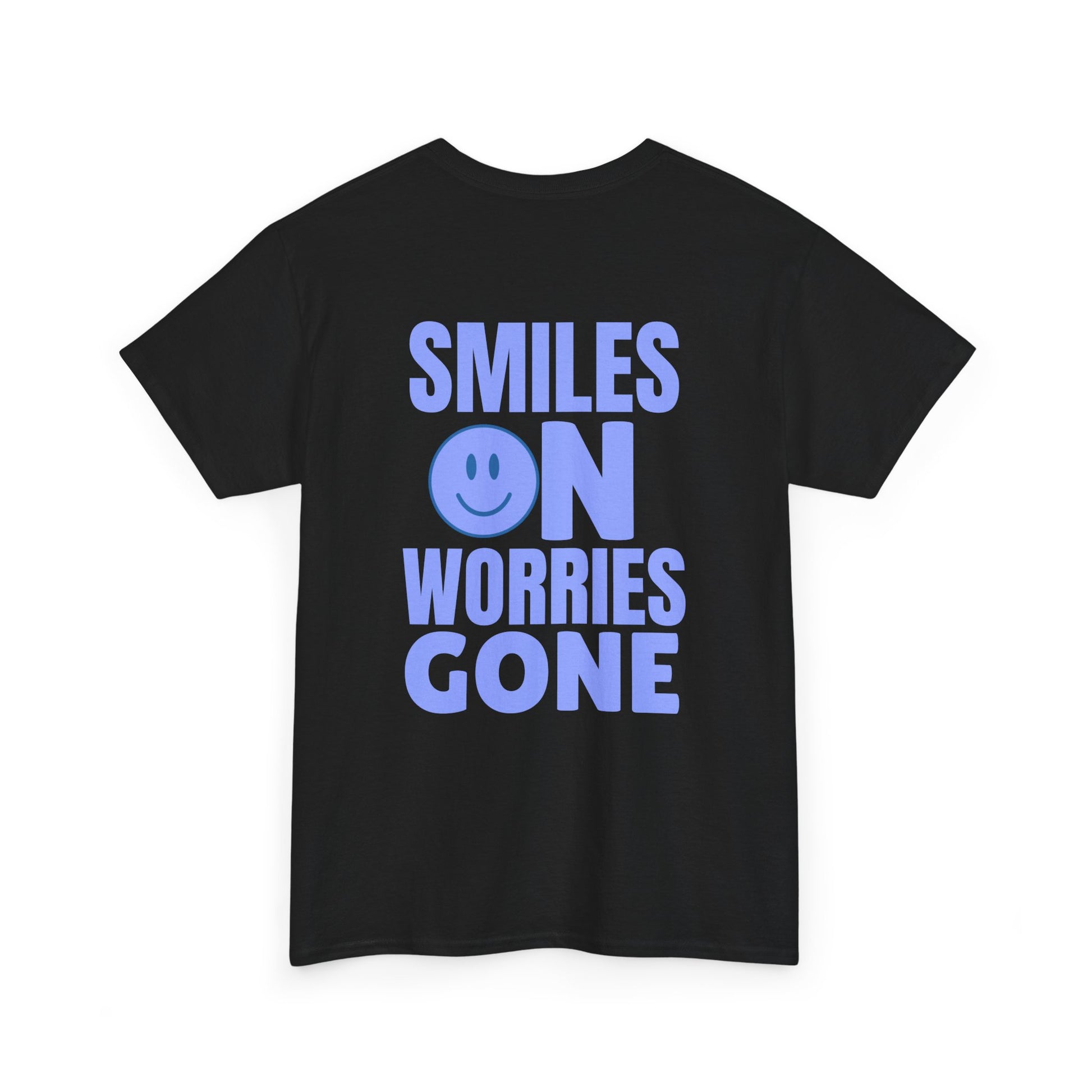 Introducing this stylish Unisex Heavy Cotton Tee, designed to bring a sense of comfort and positivity to everyday wear. With its eye-catching "WINGS UP" design on the front and a cheerful message of "SMILES ON, WORRIES GONE" on the back, this tee is perfect for lifting spirits and spreading good vibes. It's ideal for casual outings, gatherings with friends, or simply lounging at home. Great for anyone looking to express a laid-back yet fun aesthetic, this tee makes a thoughtful gift for friends or family during holidays, birthdays, or just because! Wear it during celebrations and casual meet-ups to promote a joyful atmosphere wherever you go.